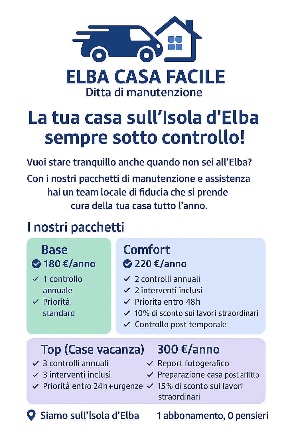 “Sono rimasto estremamente soddisfatto dei servizi offerti da Elba Casa Facile. Il personale è professionale e competente, e la mia casa è sempre in perfette condizioni grazie a loro.”
